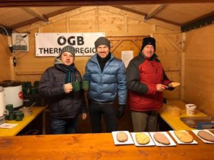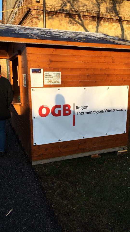 Aufgrund dessen haben sich das ÖGB Präsidium der Thermenregion und weitere freiwillige Helfer am Samstag, dem 02. Dezember bis Sonntag 03. Dezember 2017 zusammengefunden und ehrenamtlich Glühwein, Kinderpunsch und leckere Aufstrichbrote am Adventmarkt in Vösendorf verkauft.